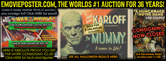 | WELCOME to THE ONLY film accessory research network on the internet. There are hundreds of articles for beginner to intermediate information. There is a Members Area for intermediate and advanced research that includes major reference books on all areas of film accessories. The ONLY database with over 70,000 Production Codes to help identify unknown movie stills, costumes and props. Also available is THE ONLY cross- referenced movie poster research database (MoviePosterDataBase.com) with 100,000 poster images online. Come Learn About (the historical documents called) Movie Posters. |