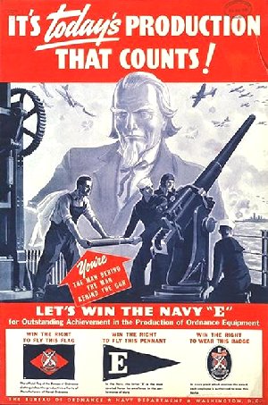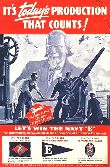 It's Today's Production That Counts Measures approx. 17" x 25" Issued in 1942 by the U. S. Navy Dept. Bureau of Ordnance. Our section: Homefront - Factory GIN: 1645-80