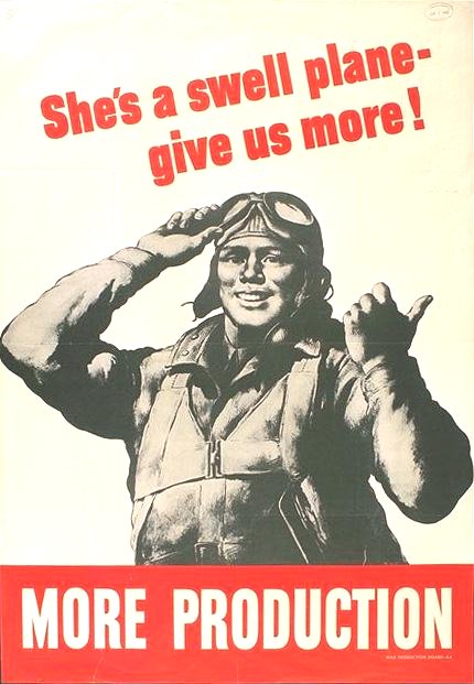 She's a Swell Plane - Give Us More More Production Artist: Robert Riggs Marked A4 Measures approx. 28" x 40" Issued in 1942 by the U. S. War Production Board. Our section: Homefront - Factory GIN: 1645-89