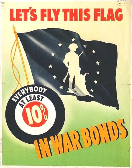 Let's Fly This Flag Measures approx. 22" x 28" Issued 1942 by the U.S. Dept of Treasury Our section: Homefront - Financial GIN: 0207-75