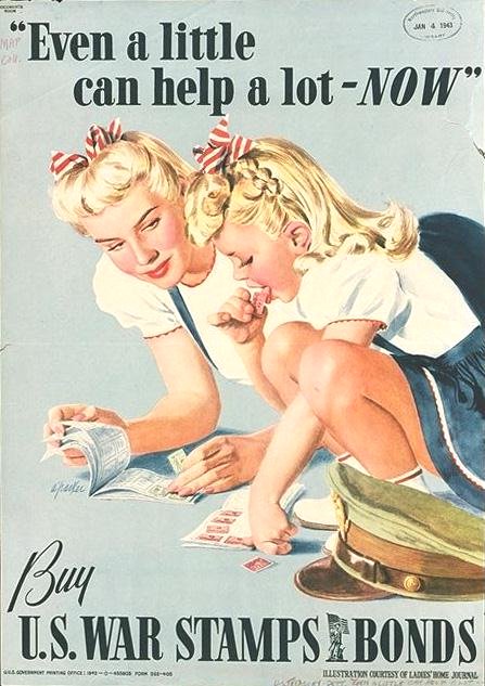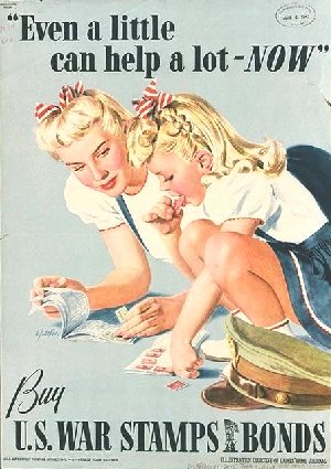 Even a Little Can Help a Lot - NOW! Artist: Alfred Parker Measures approx. 14" x 20" Issued in 1942 by the U.S. Savings Bonds Division. Our section: Homefront - Financial GIN: 1646-44