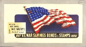 We Can.. We Will.. We MUST! Measures approx. 11" x 20" Issued in 1942 by the U.S. Dept. of the Treasury. Our section: Homefront - Financial GIN: 1647-07