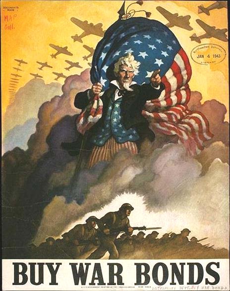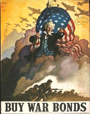 Buy War Bonds Artist: N. C. Wyeth Measures approx. 11" x 14" Issued in 1942 by the U.S. Dept. of the Treasury. Our section: Homefront - Financial GIN: 1647-14
