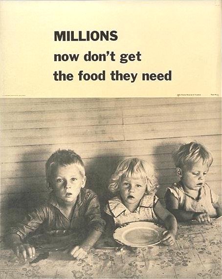 Millions Now Don't Get the Food They Need Measures approx. 20" x 25" Issued in 1941 by the Dept. of Agriculture, Extension Service Make America Strong series #2 Our section: Homefront - Health GIN: 1645-67