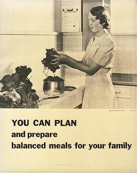 You Can Plan and Prepare Balanced Meals For Your Family Measures approx. 20" x 25" Issued in 1941 by the Dept. of Agriculture, Extension Service Make America Strong series #9 Our section: Homefront - Health GIN: 1645-70