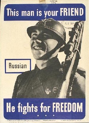 This Man is Your Friend - Russian He Fights For Freedom Measures approx. 8" x 10" Issued in 1942 by the U. S. Office of Facts and Figures. Our section: International GIN: 1647-41
