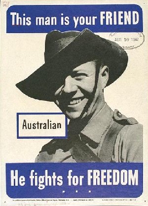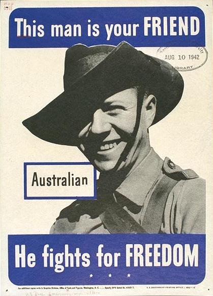 This Man is Your Friend - Australian He Fights For Freedom Measures approx. 8" x 10" Issued in 1942 by the U. S. Office of Facts and Figures. Our section: International GIN: 1647-42