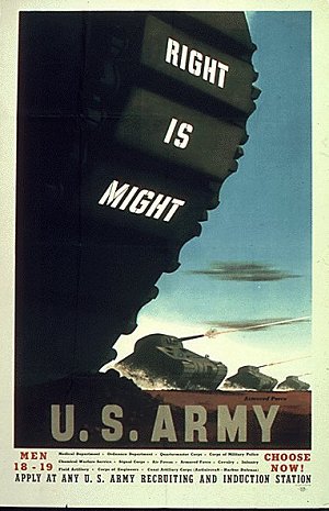 Right is Might - U.S. Army Issued: 1942 Measures: 25x38 Artist: Stu Graves Our section: Recruitment - Men - Army GIN: 17-0655 ARC: 513541