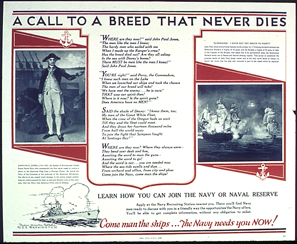 A Call to a Breed That Never Dies Great recruiting promotion ends in.... Come Man the Ships.... the Navy Needs You Now! Our section: Recruiting - Men - Navy GIN: 17-0614 ARC: 513499