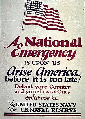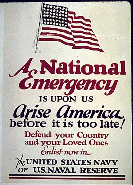 A National Emergency is Upon Us - Arise America Issued: by the Recruiting Office of the US Navy. Measures: Artist: Our section: Recruitment - Men - Navy GIN: 17-0625 ARC: 513510