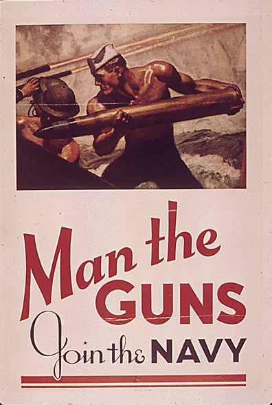 Man the Guns - Join the Navy Issued: by the Recruting Office of the US Navy. Measures: Artist: McClelland Barclay Our section: Recruitment - Men - Navy GIN: 17-0635 ARC: 513519