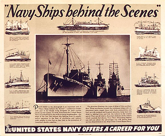 Navy Ships Behind the Scenes Issued: by the U.S. Navy Measures: Artist: Our section: Recruiting - Men - Navy GIN: 17-0735 ARC: 513621