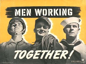 Men Working Together! Poster issued in 1941 by the U. S. Office for Emergency Management. Division of Information. Our section: Support - Morale GIN: 0207-37