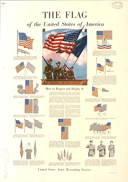 The Flag of the United States of America Artist: Thomas Woodburn Measures approx. 20" x 28" Issued in 1942 by the U.S. Army Recruiting Service. Our section: Support - Morale GIN: 1645-32