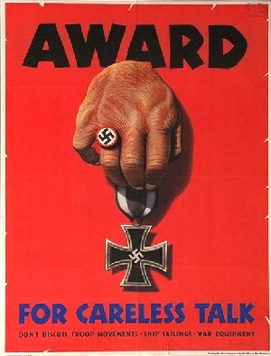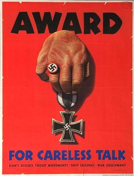 Award For Careless Talk Issued: 1944 Measures: 20x26 Artist: Stephen Dohonos Our section: Support - Silence We have found 2 different images in the archive but have only found information on one size GIN: 1647-66 & 17-0716 ARC: 513602