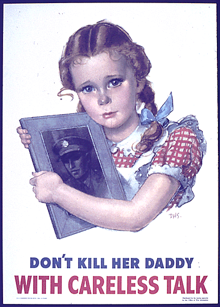 Don't Kill Her Daddy With Careless Talk One of the many heart-wrenching posters designed to make sure people didn't discuss anything concerning the military