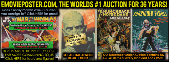 | WELCOME to THE ONLY film accessory research network on the internet. There are hundreds of articles for beginner to intermediate information. There is a Members Area for intermediate and advanced research that includes major reference books on all areas of film accessories. The ONLY database with over 70,000 Production Codes to help identify unknown movie stills, costumes and props. Also available is THE ONLY cross- referenced movie poster research database (MoviePosterDataBase.com) with 100,000 poster images online. Come Learn About (the historical documents called) Movie Posters. |
